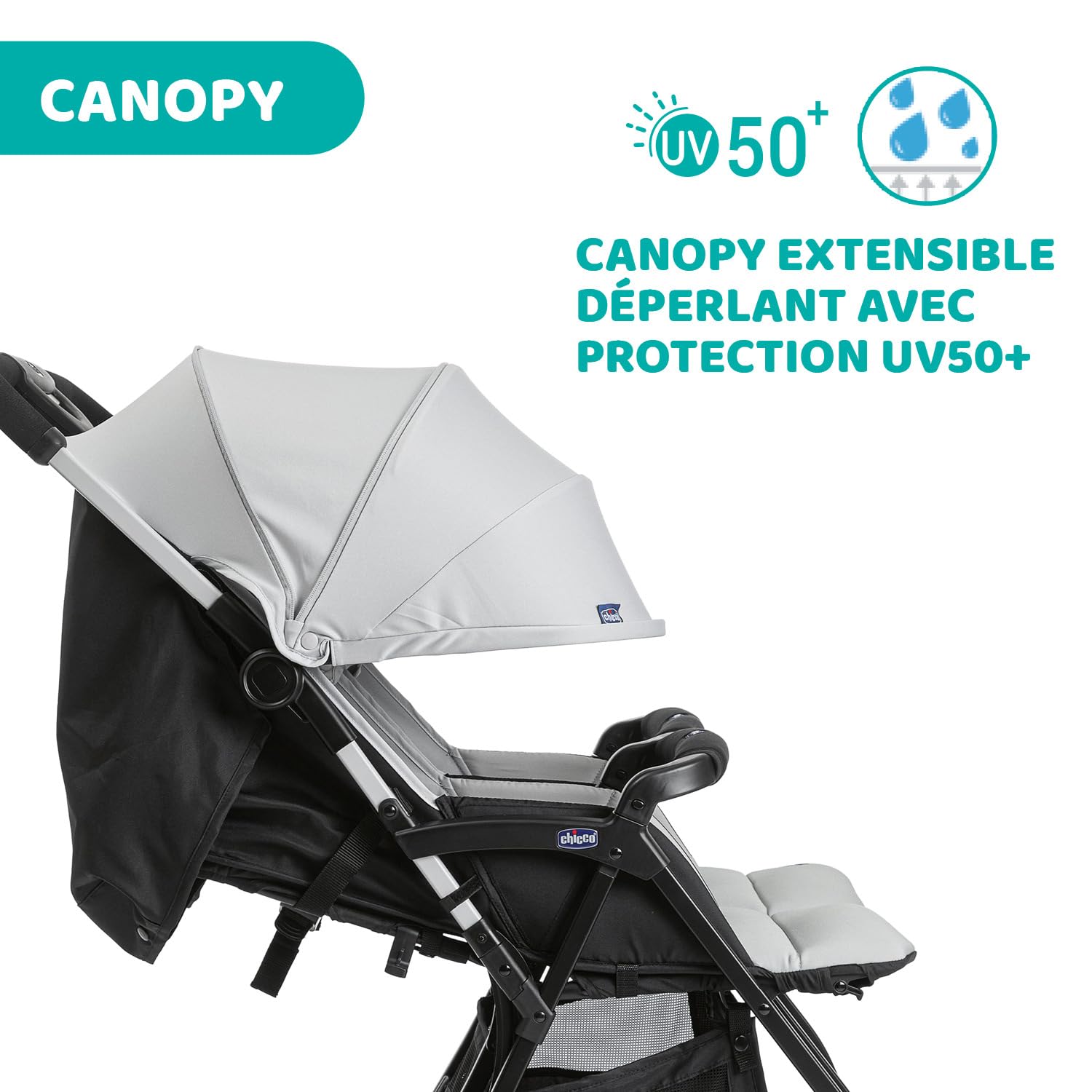 - PROTECTION SUPPLÉMENTAIRE : la capote extensible grâce à une fermeture éclair cachée assure une protection adéquate dans toutes les conditions météorologiques, y compris contre les rayons du soleil grâce à la protection UV / UPF 50+