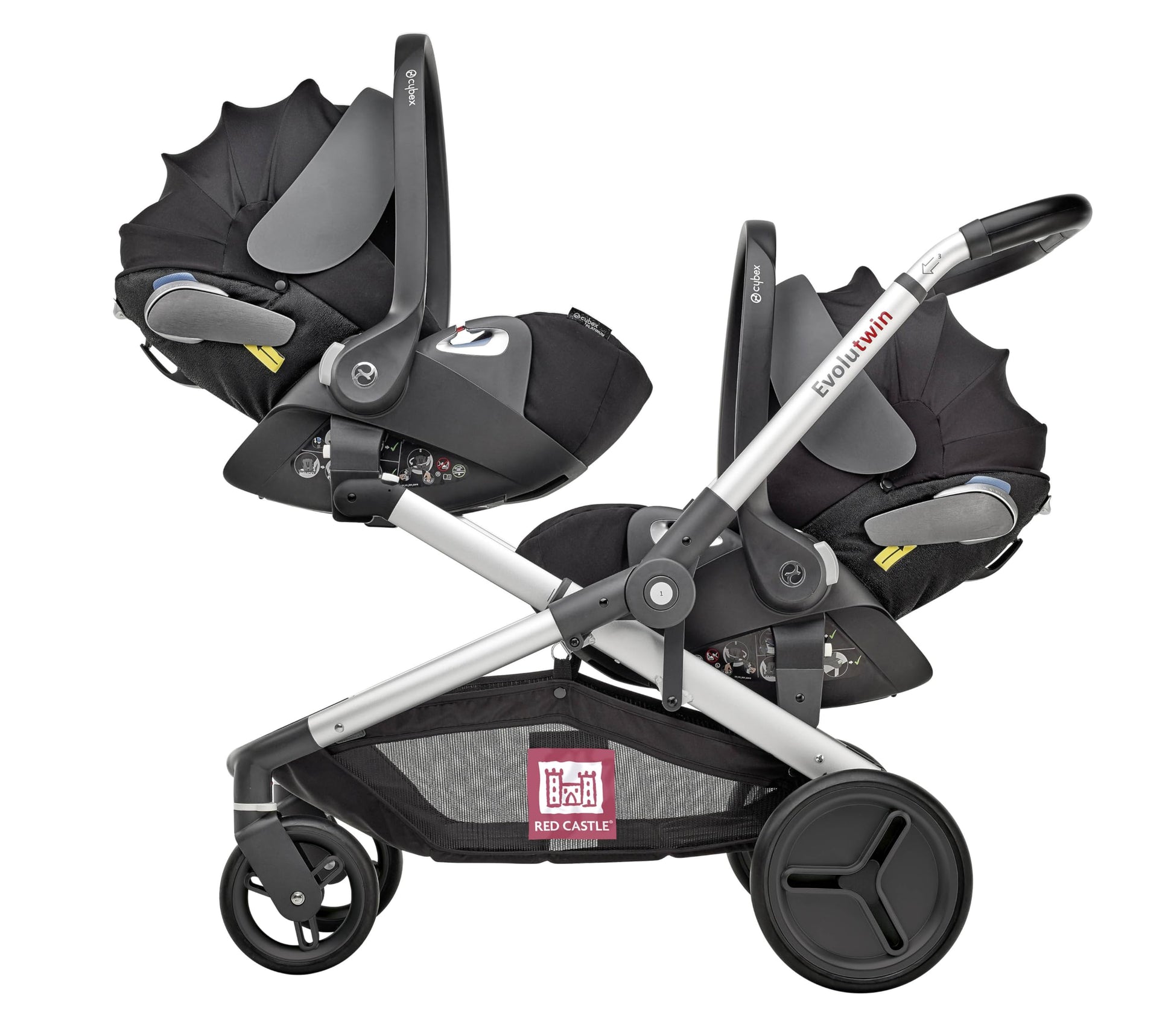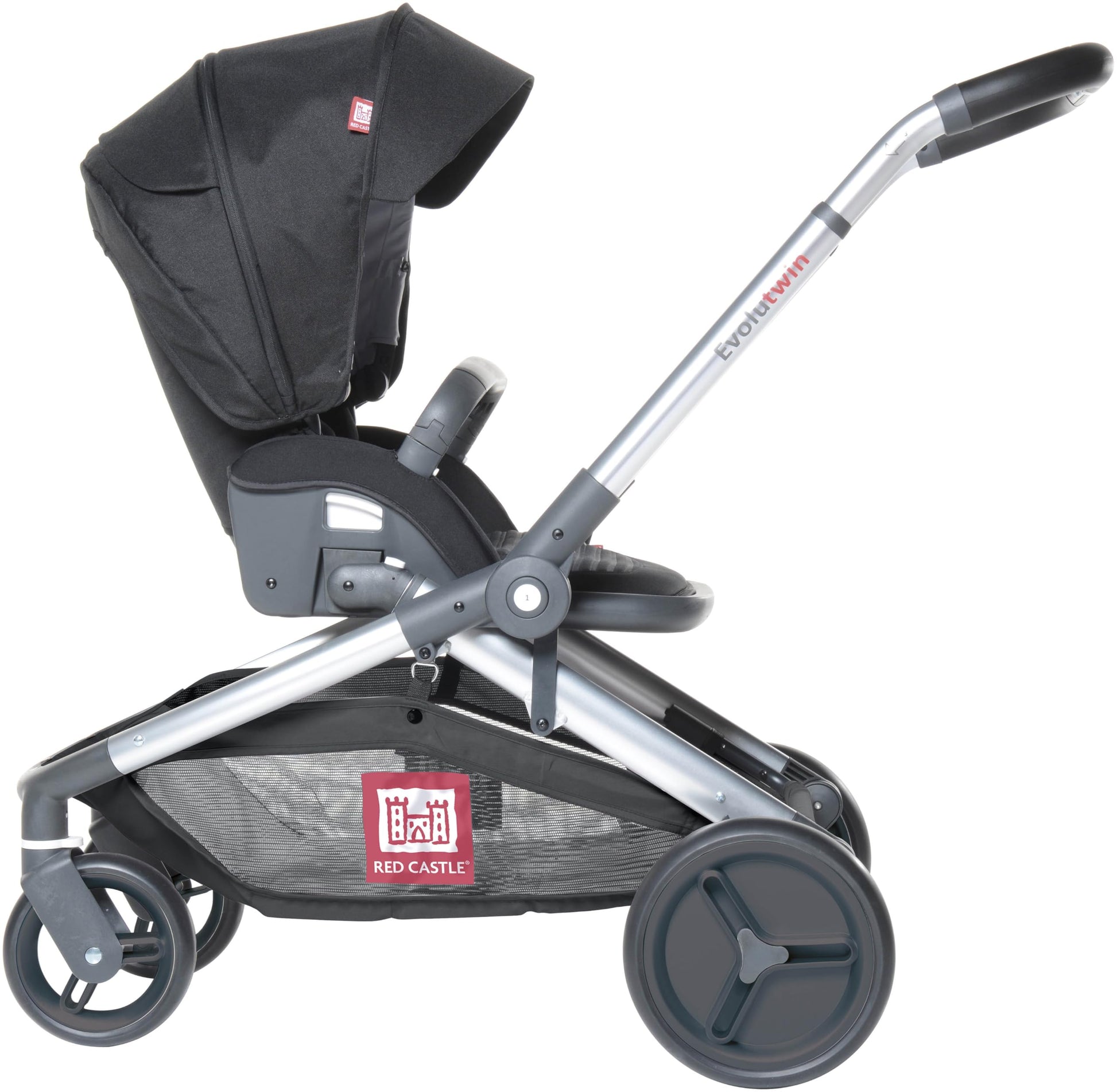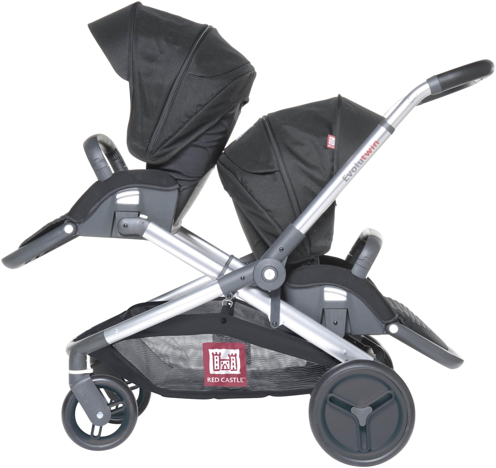 RED CASTLE, Poussette bébé Jumeaux/Tandem/Double, Dès la naissance, Siéges réversibles/dossier 3 positions, Grand panier de rangement, Chassis réglable, Modulable, Evolutwin, Noire